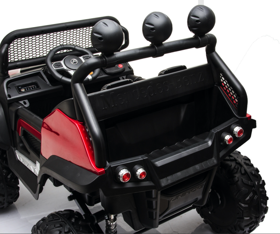 Der Mercedes-Benz Unimog 12V ist das perfekte Offroad-Erlebnis für kleine Entdecker. Mit vier leistungsstarken 12V-Motoren (Allrad) und einer 7Ah Batterie bietet dieser kompakte 2-Sitzer (bis 30 kg belastbar) beispiellose Power auf jedem Untergrund.