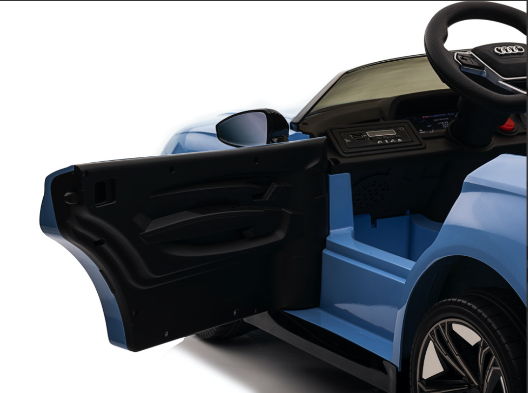 Dieses komplette Batteriefahrzeug wird mit einer 2,4-GHz-Fernbedienung geliefert, mit der Sie das Auto steuern, die Geschwindigkeit anpassen und bei Bedarf anhalten können. Das Audi RS e-tron Kinderauto ist hochglänzend lackiert.